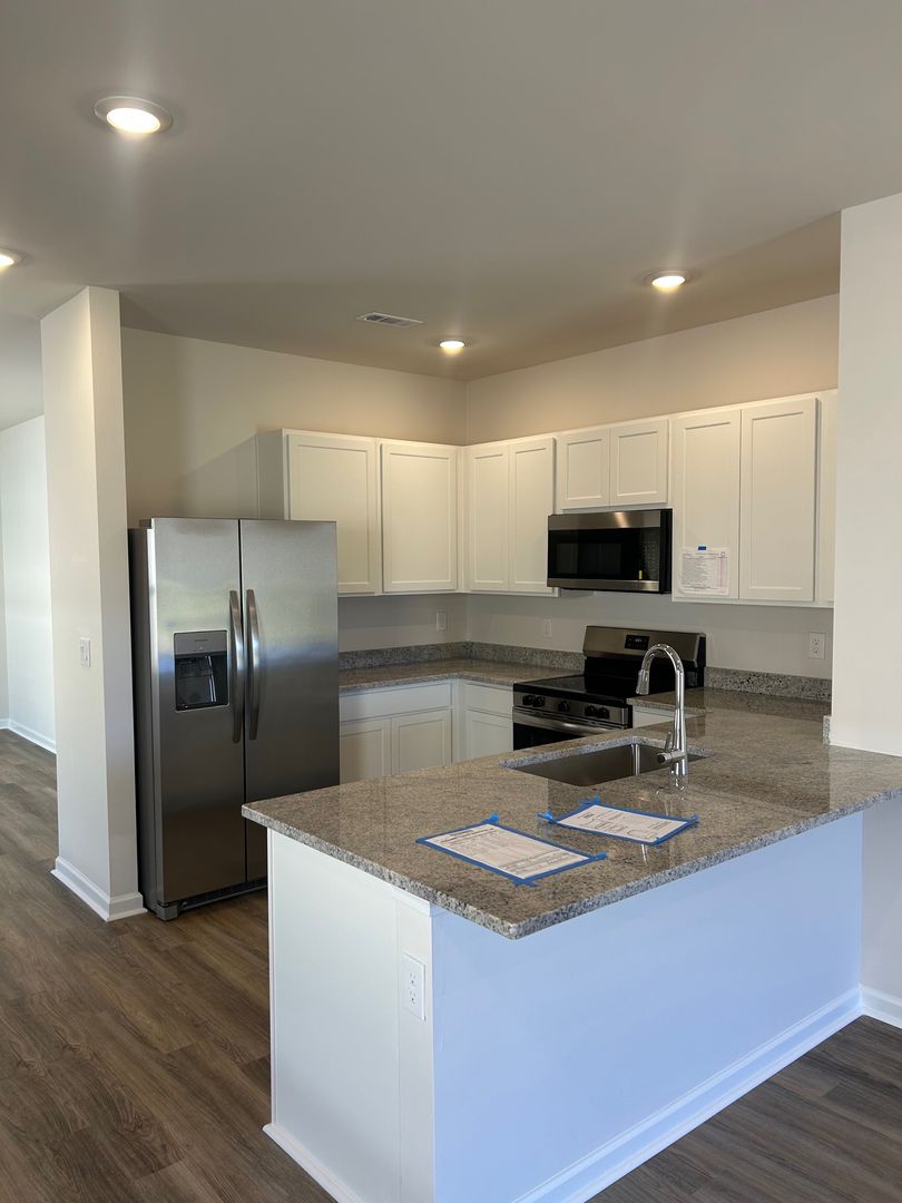 NEW NEVER OCCUPIED: The Allex in Maple Grove at Greenbrier Preserve in Madison, AL. This one-story, 1,561 sq. ft. home offers three bedrooms, two bathrooms, and a two-car garage. Designed to maximize space, it features an open layout with kitchen, great room, and dining area. The primary suite with en suite bath is at the back, while two bedrooms share a private alcove up front. Finishes include shaker-style cabinets, stainless steel appliances, quartz countertops, and a paver driveway.